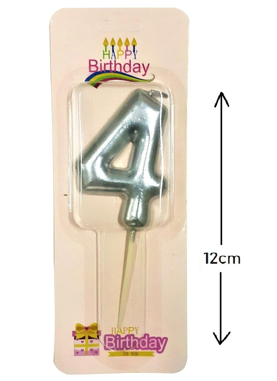 Büyük Boy 4 Rakam Gümüş Mum 12 Cm